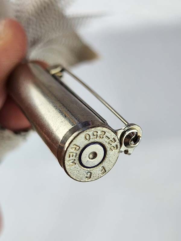 Hand made feather and bullet casing brooch.