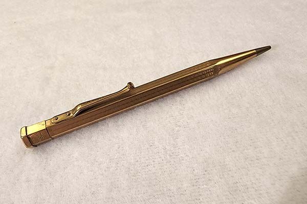 A nice rolled gold Yard-O-Led propelling pencil, c1950. Inscribed "J.Gray 5.10.55".