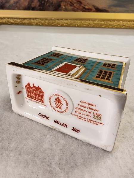 A limited edition Royal Crown Derby paperweight titled Georgian Dolls House, edition 232 of 1000. Signed Louise Adams and Cheryl Hallan.
