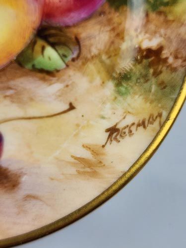 A Royal Worcester porcelain miniature plate decorated in the Fallen Fruit pattern and signed Freeman.