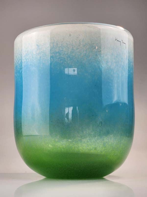 A large example of gradient mouth blown studio glass by Henry Dean, Signed.