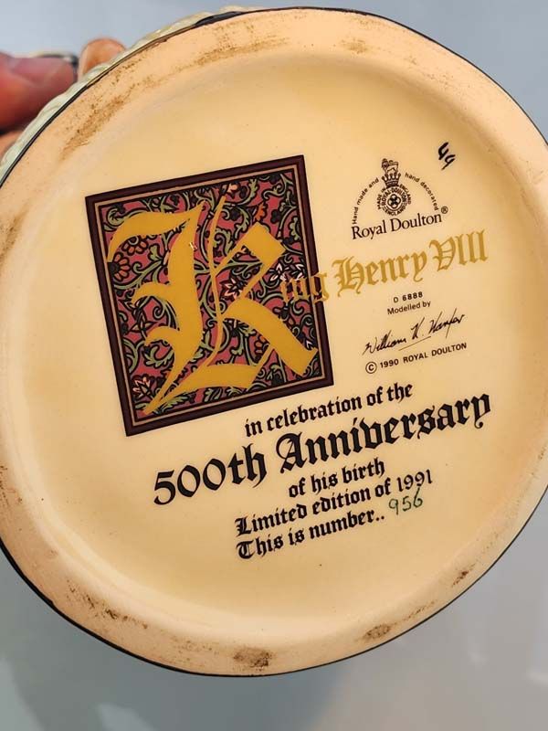King Henry VIII D6888 Royal Doulton Character Jug. 500th anniversary, Limited Edition 956 of 1991.