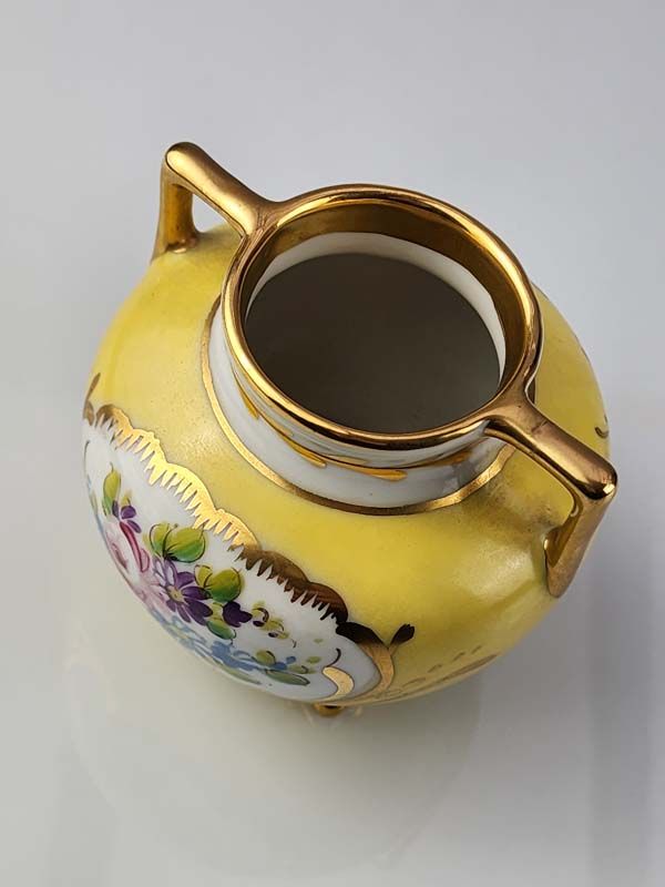 A very difficult to find hand painted cauldron/vase with gilt and posies painted to front. Hand written to base, Paint Main - crown - Limoges France.
