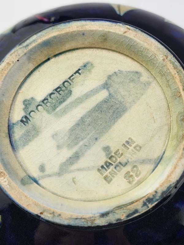 A Moorcroft small squat vase with Wisteria Plumb decoration. Signed to base.