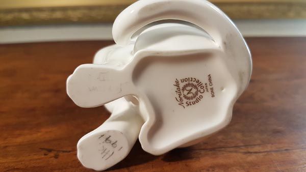 A vary finely made cat figurine of a Russian blue white, from the Studio collection. Marked in gold - Noritaki - Studion Collection - Japan - bone china.