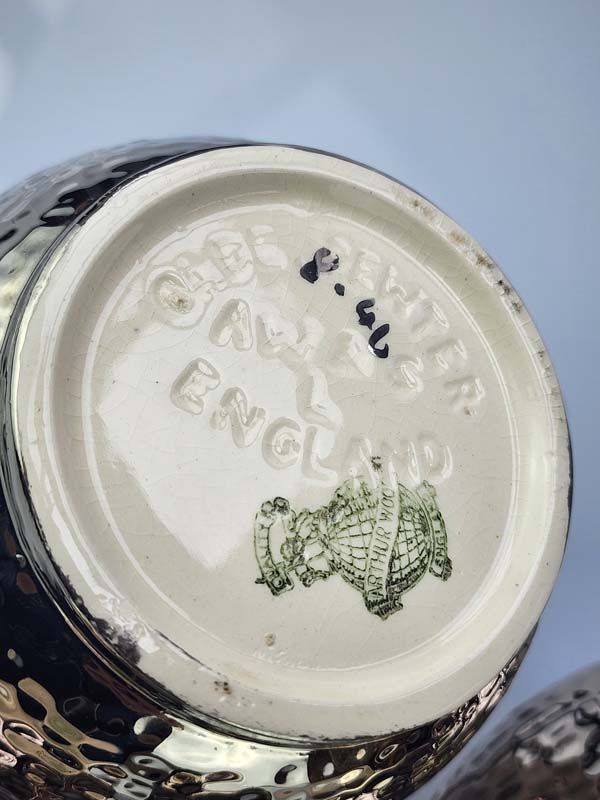 A china set made to look like Old Pewter - hence the pattern name "Old Pewter". Made by Arthur Wood - England.