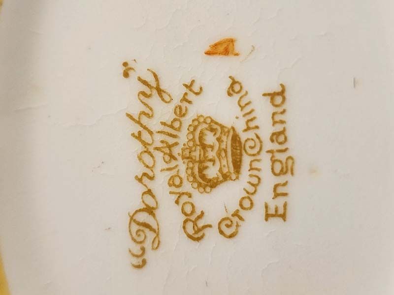 A delightfully brightly coloured Royal Albert Dorothy patterned tea set. Comprising of 2 duos (cups and saucers), sugar bowl, creamer, and teapot.