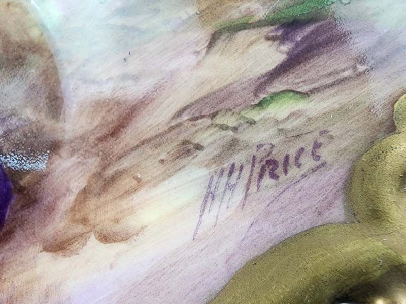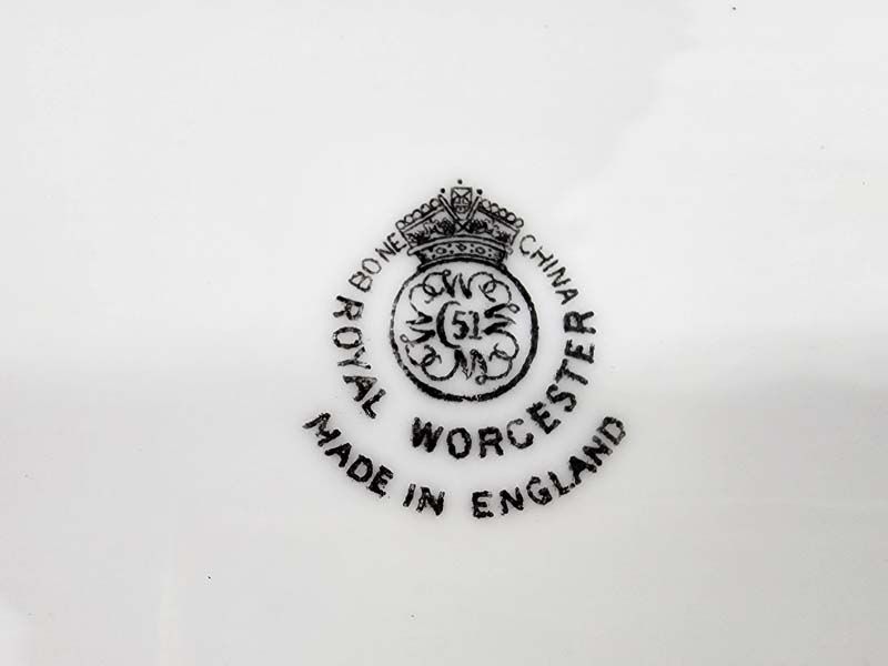 A lovely oval shaped Royal Worcester porcelain serving dish with heavy gold edging. Hand painted fruit (peach and cherry) by Horrace Price.