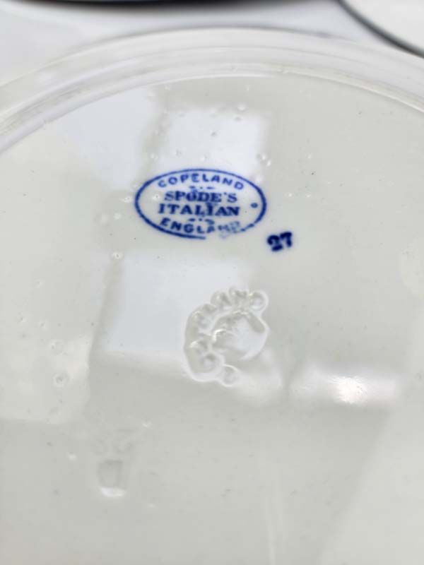 A set of six ruffle edged side blue and white plates in the Spodes Italian scene.
