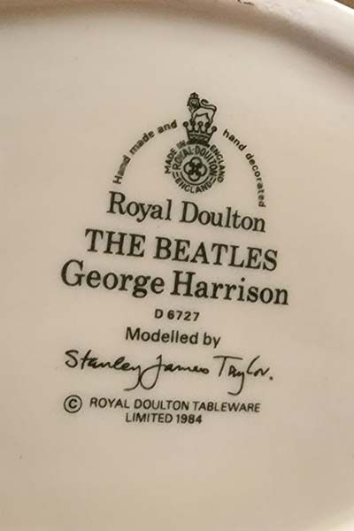 The Beatles character jug complete set: George Harrison (D6727), John Lennon (D6725), Paul McCartney (D6724) & Ringo Star (D6726).
