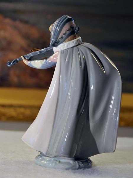 A Lladró brand porcelain figurine entitled Circus Serenade. This figurine, hand made in Spain introduced 1990, depicts a boy in circus costume plating violin.