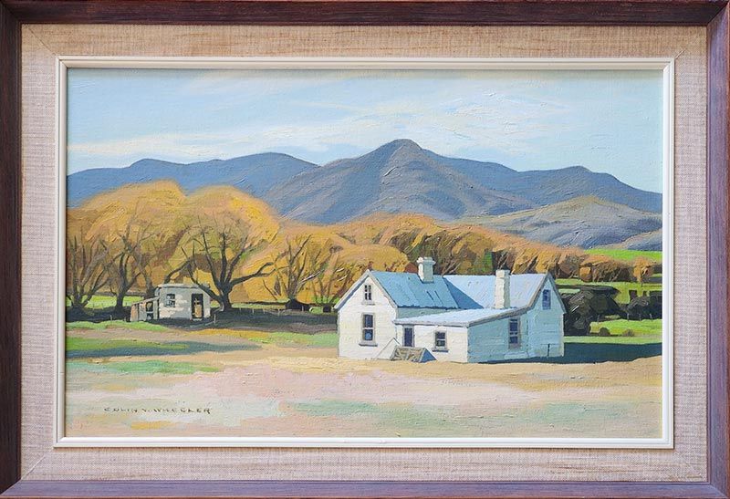 A nice example of Colin Vernon Wheelers artwork dated by the artist (reverse) 1963 with additional description of "Homestead Kyeburn, Central Otago"