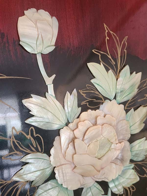 A nice group of three vintage Asian plaques with birds and flower scenes.