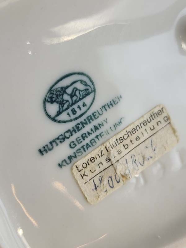 An Art Deco porcelain figural group of two running Borzoi (Russian Greyhound) dogs produced by German ceramic company, Hutschenreuther. Originally modelled by Karl Tutter.